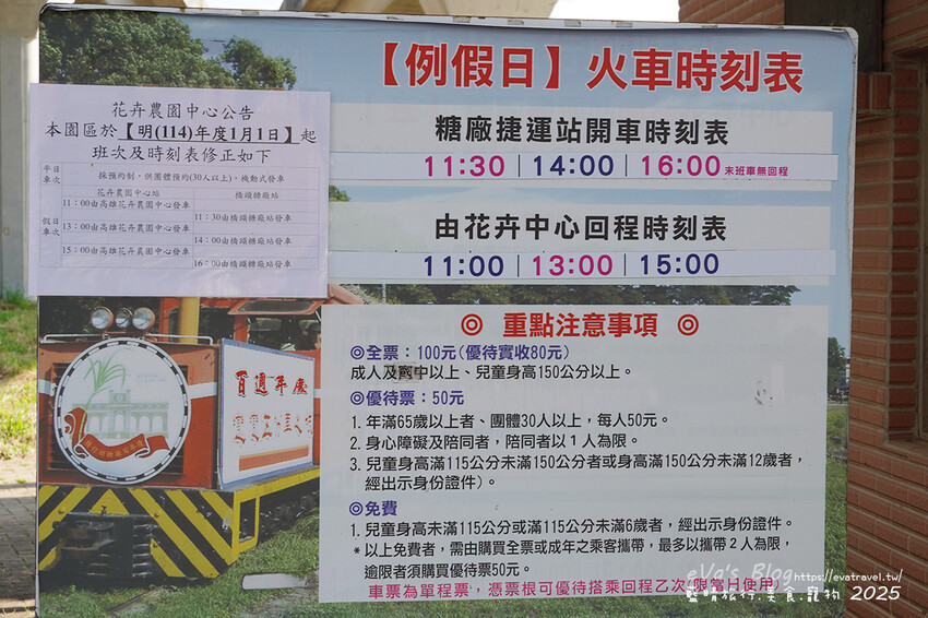 起點是台糖高雄花卉農園中心,終點是高雄捷運橋頭糖廠站3號出口,我們這次是在橋頭糖廠裡的橋頭糖廠五分車 興糖車站搭的車,但是因為時間沒有抓好,只能搭單乘的,最後再從青埔捷運站搭回橋頭糖廠