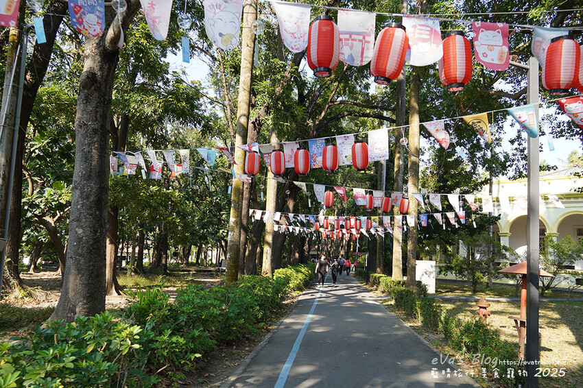 跟著人群,我們來到以日式建築為主的區域,此處懸掛著許多日式燈籠,整區日式氛圍濃厚,除了日式建築還有一棟極具顯眼的黃色仿荷蘭西洋建築,來到糖廠也可以來場知性文化之旅