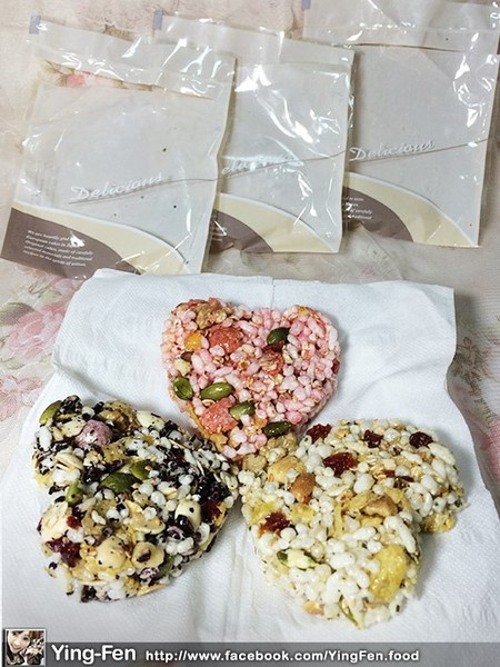 櫃台桌上有賣養生餅,看起來好像是外面看到的爆米香,這家養生餅,每一包看起來料包的很多。