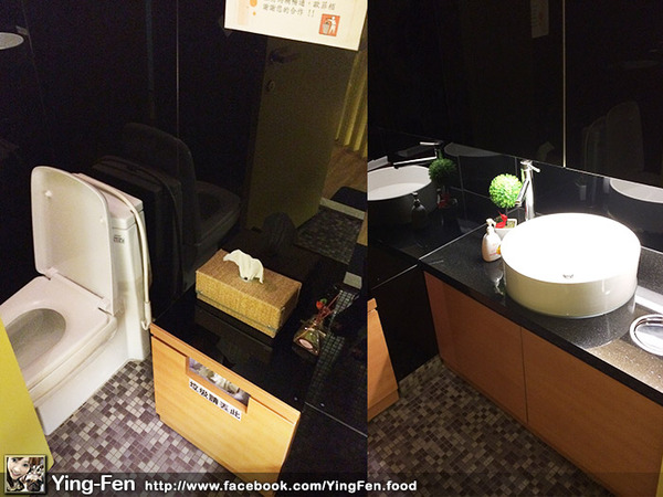 洗手間看起來很乾淨衛生,裡面沒有鏡子,是透過玻璃反射自己。
