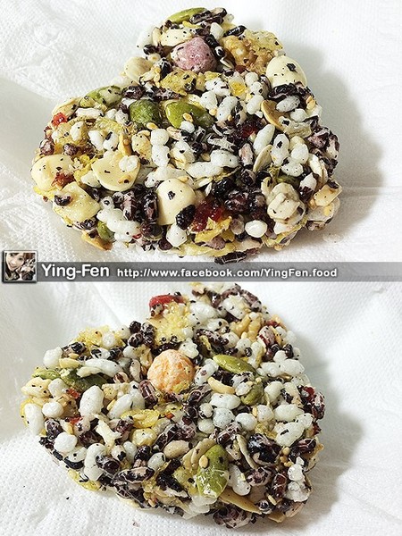 整體吃起來好酥脆,油蔥蔥味的好濃郁,花生味道超香,這兩個味道比較重,其他味道被壓過去了,滿嘴都是蔥味,呵呵!有吃到紅色是蔓越莓果乾,可以把嘴巴裡的蔥味覆蓋過去,酸酸甜甜的味道在口中,可以吃出多種不同層次味道和口感。