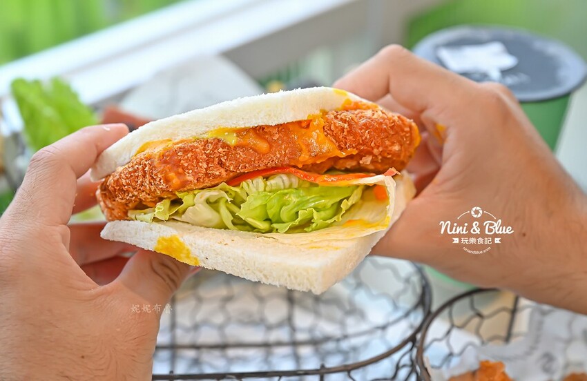 這豬排厚度真的很有誠意,長度幾乎快要超出吐司,豬肉厚切紮實卻又外酥裡嫩,加上獨家特調的鹹蛋黃金沙醬,吃起來鹹香帶點酸甜,一份吃完就很有飽足感!