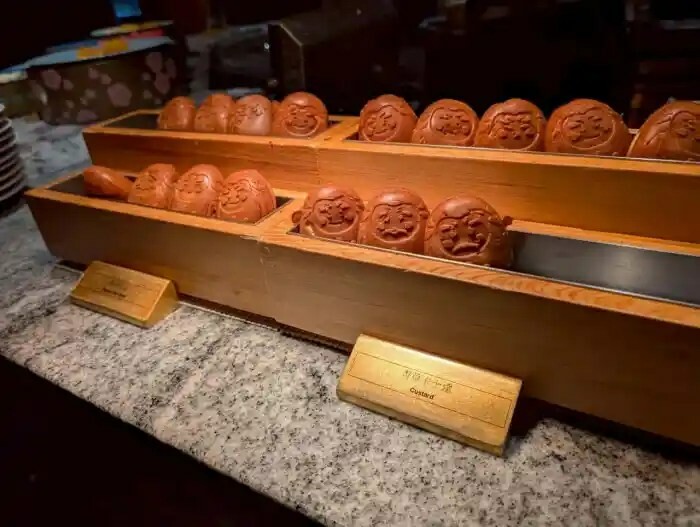 雞蛋糕兩種口味內餡都還不差,但麵體過於溼黏。喔~水果類倒是相當熱門,特別是芒果。