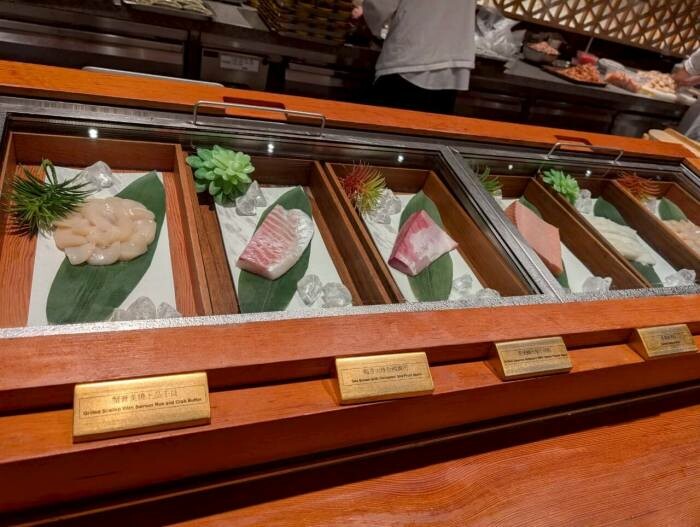 - 整間好像沒有一個專門沙拉的區塊耶?只有在生魚片那邊跟著一些涼拌類的一起這樣