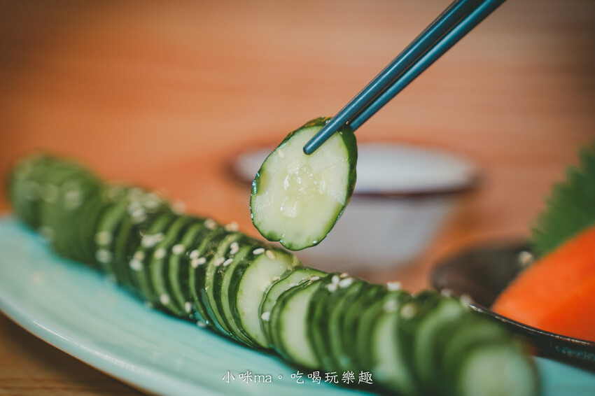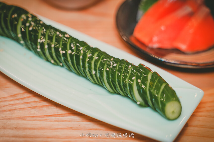 切成薄片的小黃瓜也太清脆了,吃起來完全沒有小黃瓜的菜味,越吃越開味耶,爽脆的口感不一會兒一整根都被我們清空啦