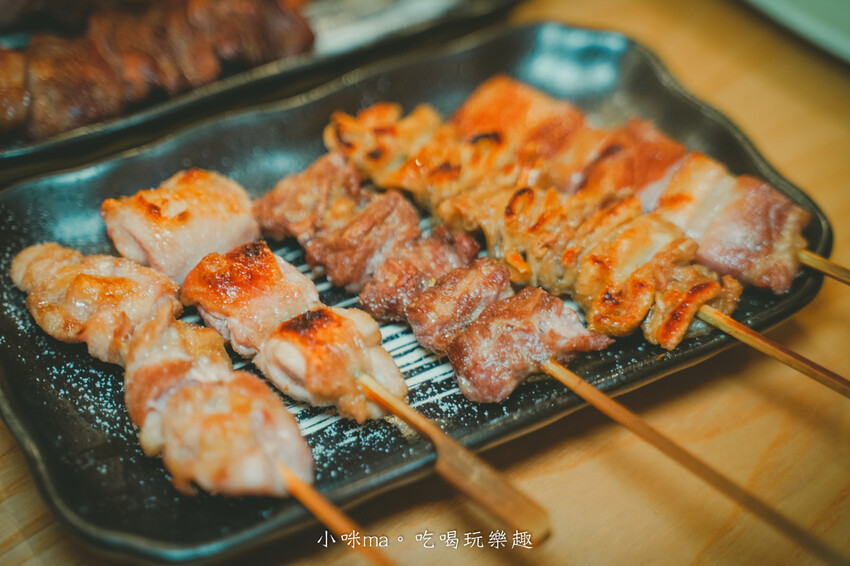 來居酒屋當然不能錯過串燒,直接點了五點盛合,裡面包含雞腿、雞皮、雞松阪、豬五花、雞膝軟骨,每一種通通來一隻,最特別的是雞膝軟骨,它是雞腿部關節處的軟骨組織,吃起來卡滋卡滋的,越吃越上癮