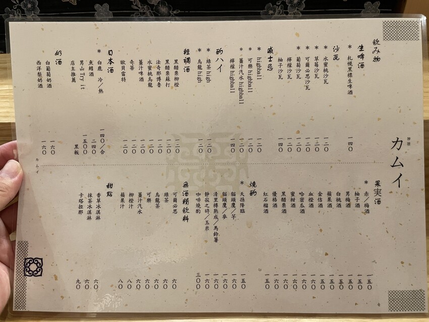 愛小酌的朋友來神居就對了,老闆之前就從事日本酒銷售,對各種酒類都有很深的了解,自己還有唎酒師的證照呢,來到這裡可以依照你點的餐點來幫你推薦適合的酒款,讓美味更加提升