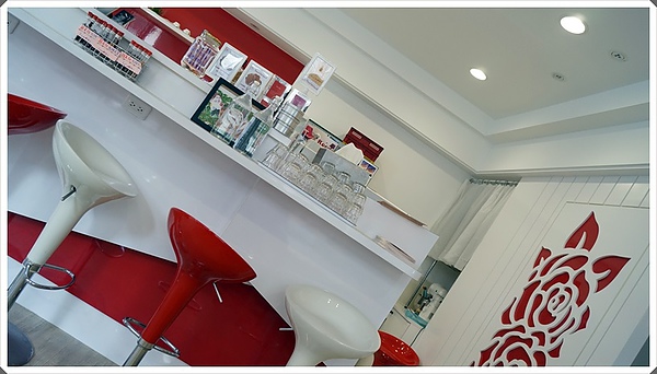 內部環境鎖定紅白兩色為主要基底色~ 打造這家玫瑰茶屋!