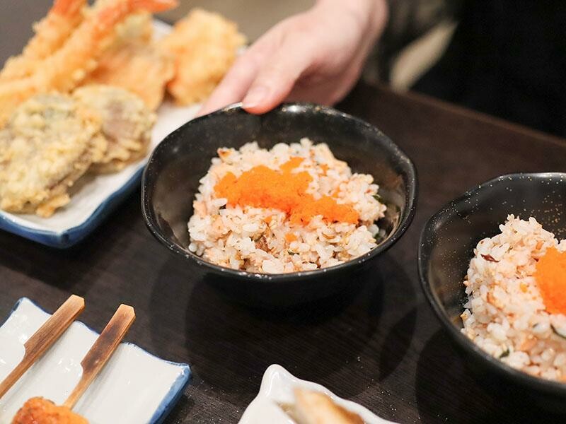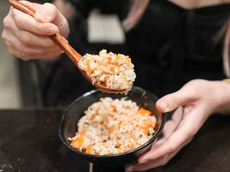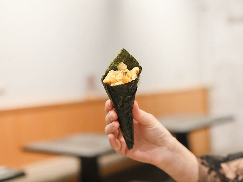 招牌的鮭魚拌飯也是竹北馬的生食丼必點的菜色。他們家不是使用鮭魚鬆,而是用整塊現煎後再剝成的鮭魚塊。搭配經過調味的米飯,散發著油香中帶著甜味的獨特風味,讓人一吃就難以忘懷。而且這一人份的份量剛好,讓人吃得恰到好處。最後的甜點是炸日式麻糬佐明太子醬。一開始看到甜點居然是搭配明太子,可能會感到有點疑惑。但這個搭配其實非常聰明,麻糬外酥內Q,再配上鹹香的明太子醬,是一種鹹甜交織的小驚喜。這套單人合菜,從開胃菜、生魚片到熟食都安排得恰到好處。它不追求浮誇的排場,而是讓人能夠專注在食材的鮮美與調味的穩定性。即使是一個人用餐,也不必放棄滿盤豐盛的大餐,您可以輕鬆享用多道料理,重新愛上一個人吃飯的滿足感。