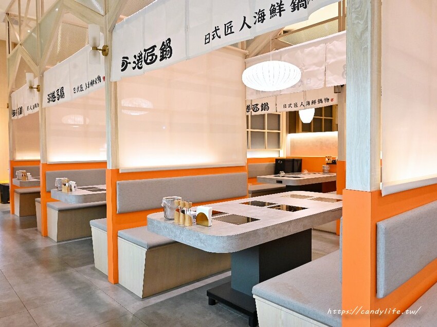 海港匠鍋店內裝潢打造質感又時尚的用餐環境,溫馨舒適的氛圍,給大家宛如賓至如歸的感覺,座位區是採半開放的包廂式座位,空間寬敞舒適,有四到六人的座位區,非常適合多人聚餐
