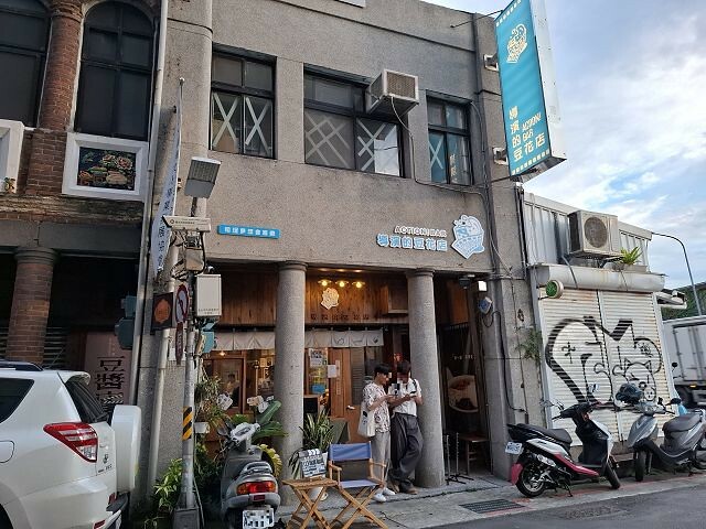 如果你正在台北大同區尋找獨特的迪化街美食,那麼「導演的豆花店」絕對是個讓人眼睛為之一亮的好地方。光是聽到「導演的豆花店」這個名字,就覺得很有趣,它就藏在迪化街的巷弄裡面。這間店是由導演親自開設的,外觀看起來像個懷舊的老宅。走進店裡,你會發現它充滿了文青風格,木質桌椅搭配得很有溫度和個性。店裡到處都是攝影作品、插畫創作,還有電影劇照、攝影燈具和牆上的塗鴉,感覺這裡不只是一間豆花店,更像是個創作者的日常基地。從這些裝潢擺設中,就能感受到何明瑞導演在影像教學和製作豆花上的用心與堅持。這裡的菜單很簡單,主要就是「豆漿豆花」、「麥芽糖水豆花」和「麥芽糖水剉冰」三大品項,而且都能選三種配料。