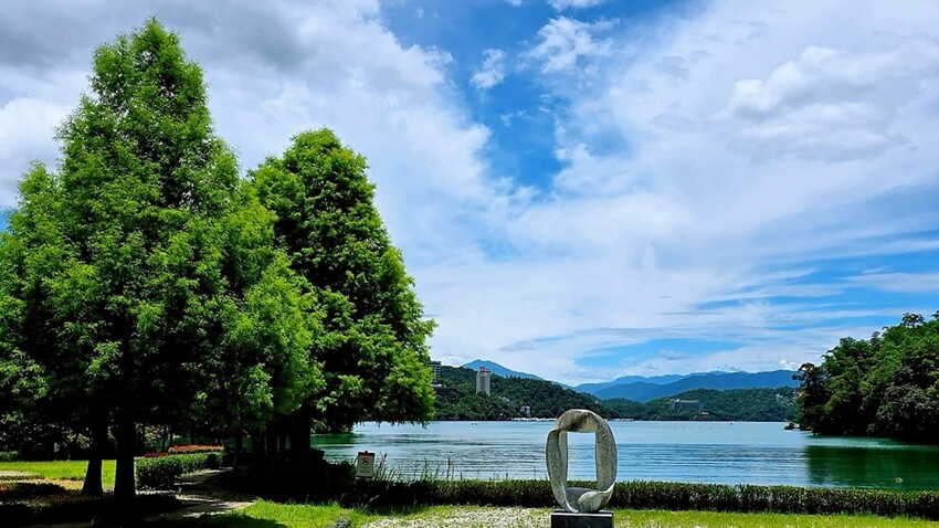 若天氣不那麼熱,感覺在這裡來個大野餐也會很不錯。藍天白雲的天氣總是能拍出令人滿意的照片,許多人更是決定等落羽松變黃後要再次前來。行走間,您會遇到不少騎腳踏車漫遊的朋友,日月潭環湖自行車道規劃得非常完善。強烈建議大家安排一趟日月潭之旅,在水社碼頭租個腳踏車,邊騎邊拍照,肯定會充滿樂趣,快找個時間來日月潭輕鬆玩樂吧。