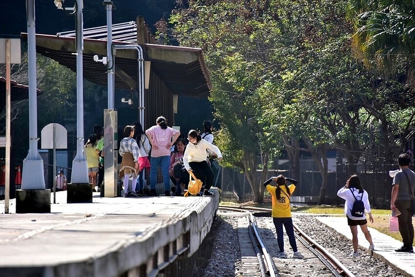 南投水里車埕小鎮,一個作者念茲在茲卻一再錯過的地方,終於在清朗的初冬時分,搭著遊覽車,往最初的嚮往奔去,一接近南投縣水里鄉,心裡就充滿了期待,車子停在了前身為車埕國小的車埕鐵道觀光小學堂,在群山環抱中,熟悉的藍皮列車和舊時車站的氛圍瞬間拉滿,穿越了小學堂,竟彷彿穿越了任意門,場景瞬間切換為月台,這感覺實在太奇幻了,眼前開闊的站前大草坪也停靠著藍皮列車,雖然時間有限,但已經可以感受到車埕小鎮獨特的魅力,期待著湖畔落羽松的美景。