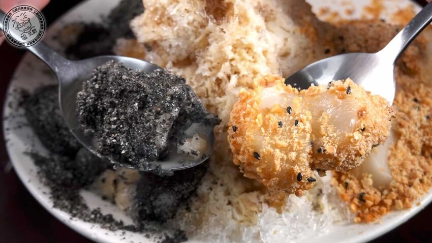 這裡的焦糖刨冰也讓人刮目相看,除了配料是老闆自己煮的,最特別的是他們的冰塊,是老闆特地找來大塊冰塊再用刨冰機刨出來的,吃起來特別細緻,整碗都充滿古早味。 而他們家的燒麻糬更是厲害,麻糬是煮出來的,再分別沾上花生或芝麻粉,我個人最愛花生口味,老闆特別請廠商把花生顆粒磨得剛剛好,又有點顆粒感又不會太粉,麻糬又大顆,真的比很多夜市的都好吃,完全是第一名。
