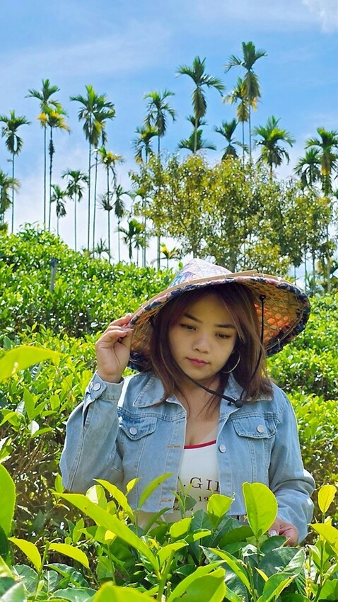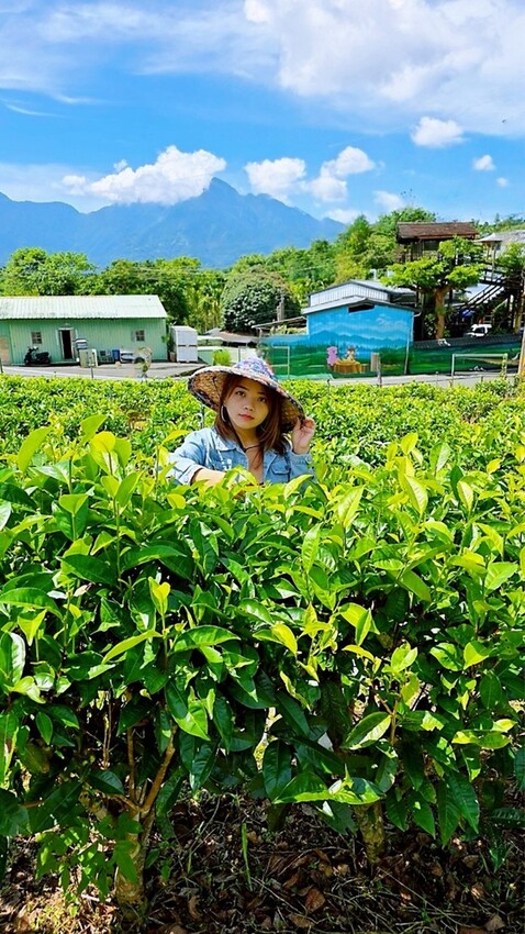 帶起店家提供的斗笠採茶帽,我們要來去茶園走拍(非採茶喔),店家現場有提供防蚊液、可先噴在來茶園超貼心,但還是會建議你穿著長褲,當然也可跟小涼姊妹一樣為了拍出美麗的照片,我們可是不會輸給蚊子的XD