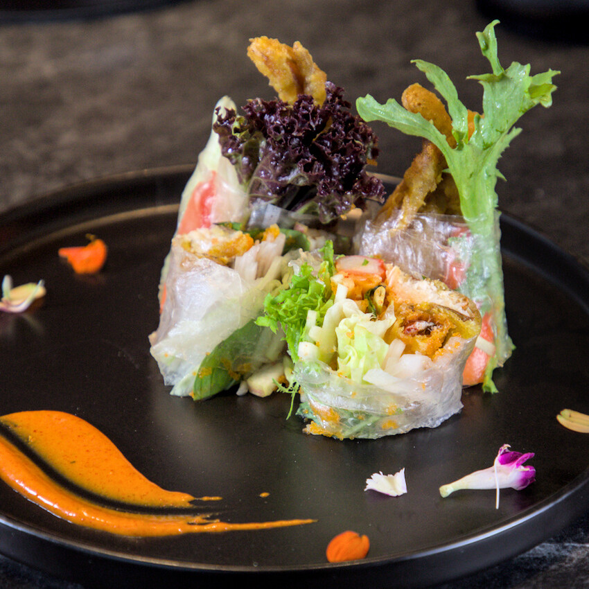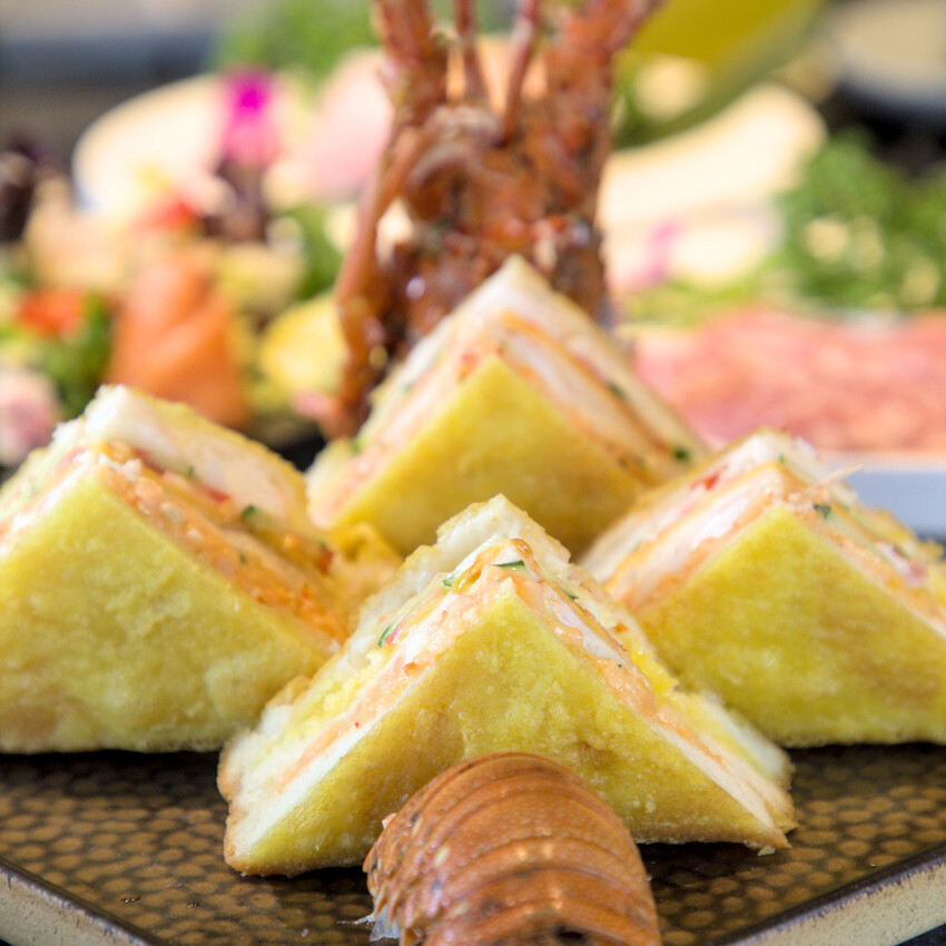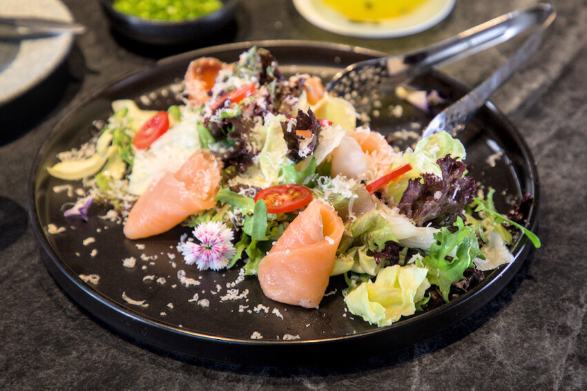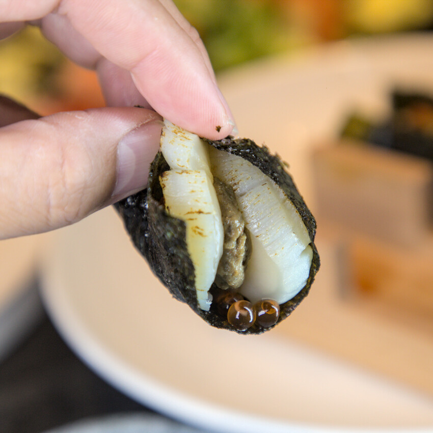 來到1928燒肉總鋪高流海洋店,絕對不能錯過他們家的高流店限定品項,像是「龍蝦三明治」和「干貝蟹膏馬卡龍」,這些真的超吸睛又美味,保證讓你驚艷。第一次來的朋友建議可以直接選兩人套餐1928元起,會比較優惠。今天點了超過10道料理,從前菜、主食到甜點全都有,想來點開胃又解膩的小品,推薦試試「山藥泥冷豆腐」(💰79),酥炸豆腐吸附日式醬汁,搭配綿密山藥泥、海苔絲與芥末,清爽不膩、口感滑順。如果喜歡有點創意的手捲,「米紙軟殼蟹卷」(💰228)絕對吸睛又好吃,透明米紙包裹酥炸軟殼蟹和鮮蔬,一口咬下外酥內嫩、層次豐富「煙燻鮭魚沙拉」(💰288)則是燒肉前很適合的前菜,大片煙燻鮭魚搭配新鮮生菜、番茄與起司碎,淋上金黃特製醬汁後,清爽中帶點鹹香,讓人一口接一口停不下來。