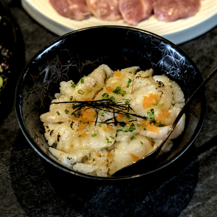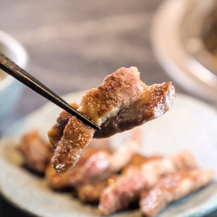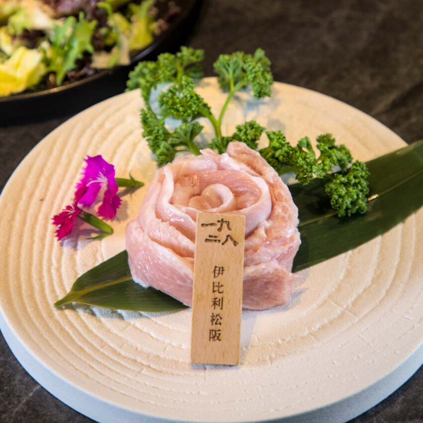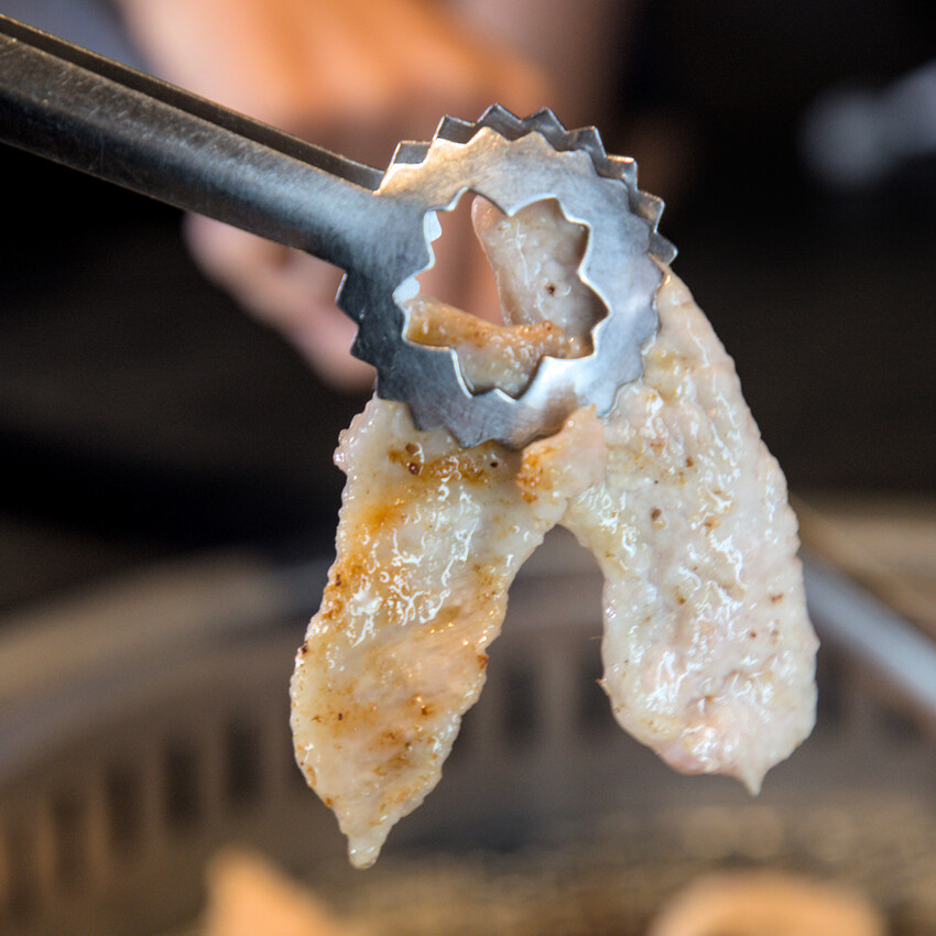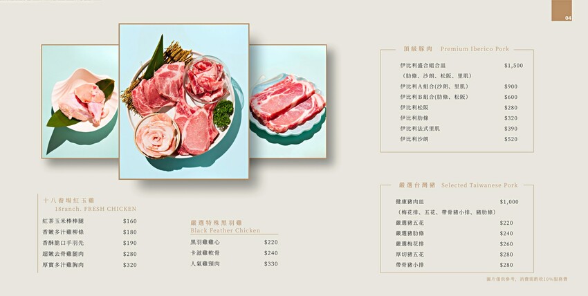 進入主角部分,「雪花牛肉」(💰350)油花分布均勻,稍微烤熟後就能嚐到軟嫩多汁的口感,是肉控絕對不能錯過的經典。而「人氣雞頸肉」(💰330)則是1928燒肉總舖的招牌,烤至表面微焦後香氣四溢、越嚼越香,讓人一試成主顧。喜歡豬肉的話可以試試「伊比利松阪豬」(💰280),西班牙進口的肉質Q彈脆嫩,上桌還特別捲成玫瑰花造型,烤過後香氣四溢,口感更是豐富。若想要更奢華一點,「伊比利沙朗」(💰520)是不二之選,油花分布猶如大理石,五分熟最剛好,肉質軟嫩、肉香濃郁,搭配特製醬汁一口咬下,美味在口中綻放。