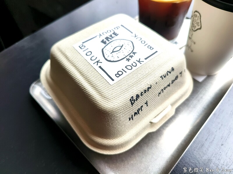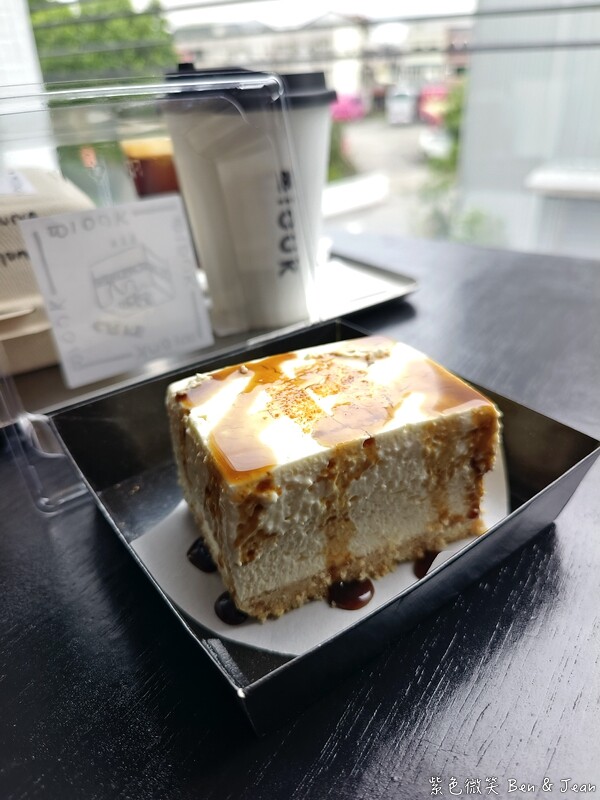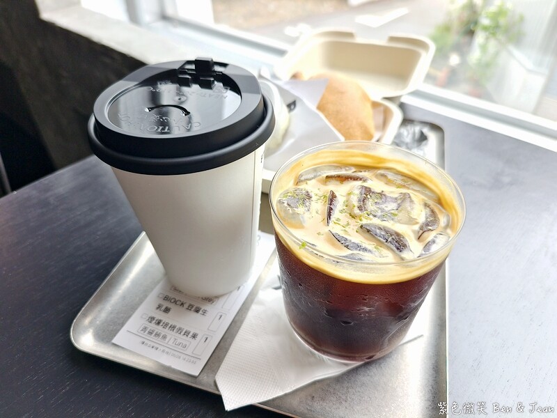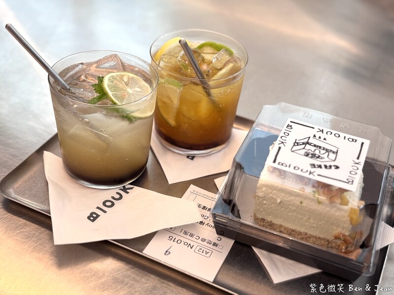 BLOCK COFFEE的餐點主要以咖啡飲品為主,另外還有一些特色輕食跟甜點。他們的菜單相對來說是比較簡單一點的,不過咖啡的部分,是很有澳式風格的。像是他們的招牌甜點「BLOCK豆腐生乳酪」,就是店家特別推薦的,可以算是他們的招牌甜點。這道甜點遠遠看,還真的有點像淋了醬油膏的豆腐耶,不過上面其實是黃豆粉跟黑糖蜜啦。豆腐生乳酪吃起來口感軟軟綿綿的,還帶著淡淡的黃豆粉豆香,底部則是餅乾,整個吃起來口感很有層次。再來是「煙燻培根假貝果加青醬鮪魚乳酪醬」,它的外盒質感很不錯。這個假貝果吃起來口感比較鬆軟,它真的是假的貝果喔,只是長得像貝果而已。青醬鮪魚乳酪醬是需要另外加錢的,還好兩個加起來的價格還算可以接受,就是個簡單的輕食。飲品的部分,像是「椰美泡泡」,喝下去第一口就能感受到清爽的椰子風味。現在用椰奶來做咖啡的飲料越來越常見了,有些是走濃郁路線,但這杯椰美泡泡喝起來更清爽,這種喝法真的滿不錯的,也多了不同的趣味。他們的「伯爵鮮奶茶」表現也挺不錯的。