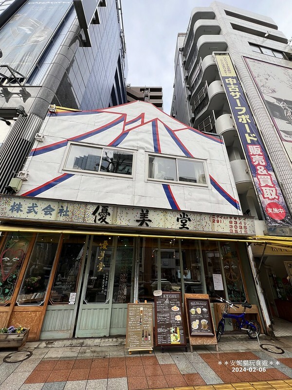 後來我和蘇菲的防撞褲就是在Sports Bomber購買的,我們選擇了全下身款式,因為可以試穿,膝蓋的位置非常剛好,就不需要再另外買護膝了。不過實際滑雪後發現,屁股的部分還是稍微薄了一點,如果摔得比較大力,尾椎還是會撞到。另外,我也很推薦Murasaki Sports神田小川町店,這家店有許多小朋友的防撞褲和外套可供選擇,滑雪外套的花色也非常潮流,建議大家可以把所有店都逛完,再回頭選購心中最滿意的商品。這次同行的友人跟男子組都是購買半身褲,所以他們還需要額外購買護膝和護掌等用品。教練特別提醒,護掌對初學者來說非常重要,因為我們跌倒時常常會用手掌去支撐,因此初學者一定要準備好。我們後來走到馬路對面,FUSO這家店有很多分店,每間店都專賣不同的滑雪用品,分門別類非常清楚,像是雪板專賣店、雪鞋專賣店、滑雪衣物專賣店等等,大家可以針對自己需要的品項去逛。御茶ノ水這條雪具街,如果真的要仔細逛完,至少需要花上半天的時間。原本我們還想去一家叫做「優美堂」的復古咖啡店喝咖啡,但時間真的不允許,只能期待下次有機會再去了。到了晚餐時間,原本兩家人想一起用餐,結果這附近竟然沒什麼餐廳,我們只好分開用餐。