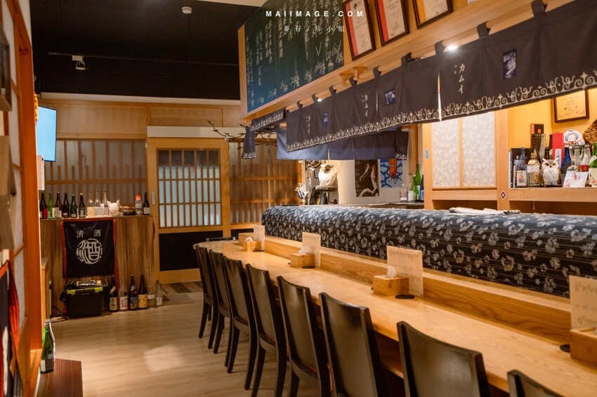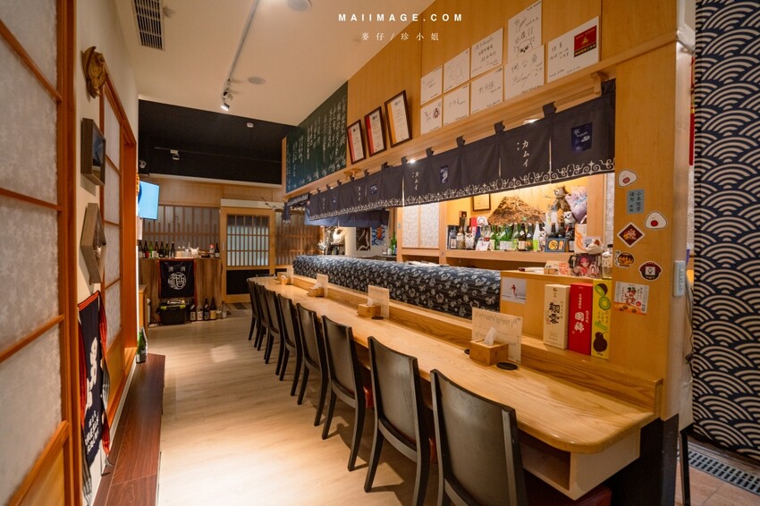 它店內最大特色之一就是要換拖鞋,然後老闆就會在檯前親切地招呼大家,還會寒暄聊天。先不說餐點究竟好不好吃,光是這第一印象就已經好到不行了,鞋櫃裡都備有室內拖鞋,脫下的鞋子也可以放進鞋櫃,一進到《神居》看到檯前原木有質感的座位區,就像是在高級日料店用餐一樣,但記得要先換好拖鞋才能入內喔。