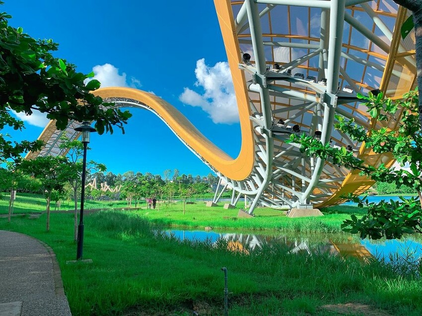 來到南科,別錯過指標性公共藝術「舞彩迎賓」座落的迎曦湖,感受這片悠閒綠地。