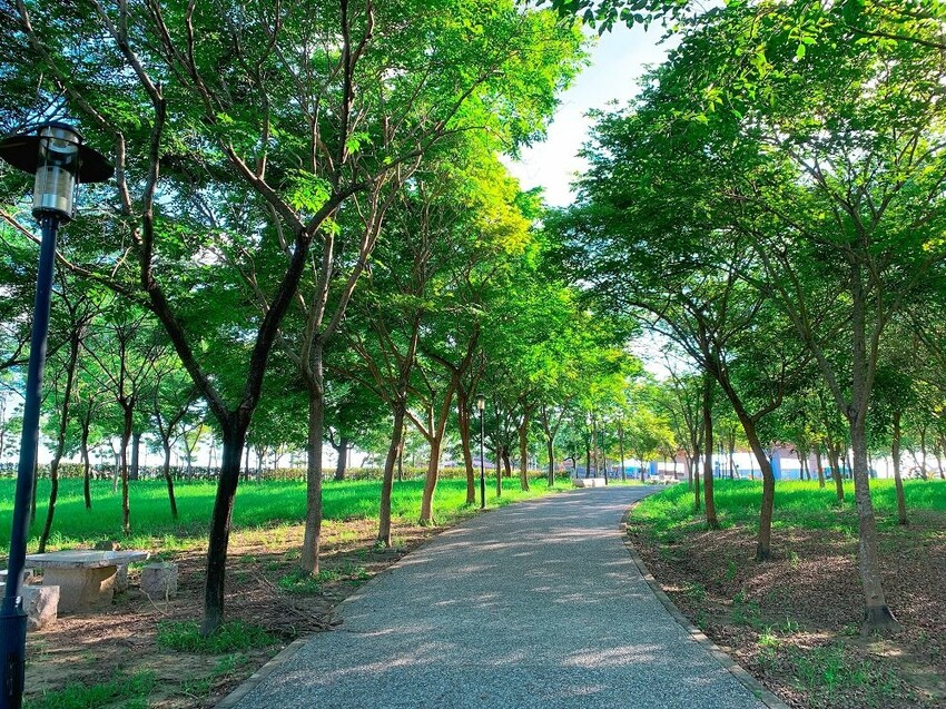 迎曦湖整個環湖步道走一圈大約需要四十分鐘,湖邊樹木茂密,午後常常能看到許多釣客來這裡垂釣,這裡真的是南科居民運動散步的好地方。沿著步道,您還能欣賞到一些特別的裝置藝術品,步道兩旁盡是綠意盎然的景致,讓人感覺非常悠閒放鬆。