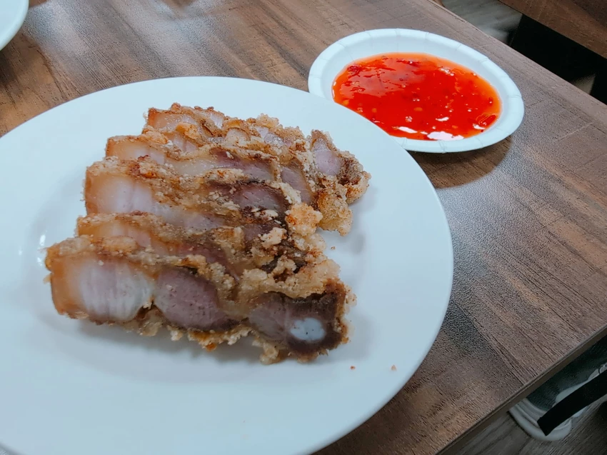 再來是台式脆皮燒肉,原本期待的會是像港式燒臘那種的脆皮燒肉,