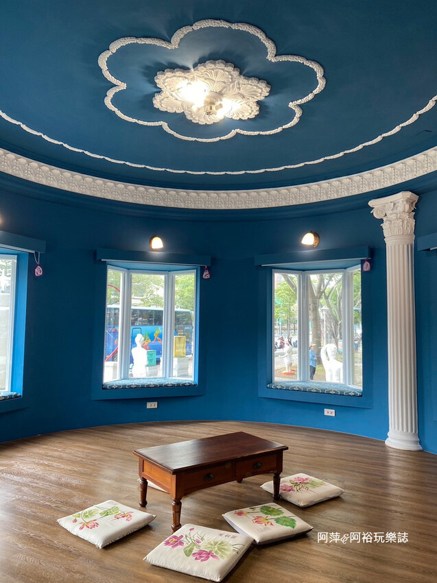 走進藏金閣2館的室內,你會發現這裡展示著許多回收再利用的復古懷舊家具,像是阿嬤的梳妝台和各種櫃子,還能看到以前的腳踏車,真的很有古色古香的氣氛,彷彿回到了過去的時光。這裡也特別規劃了和室地板區,讓大家可以進入感受不一樣的日式氛圍。此外,藏金閣2館還會展示一些由回收物品變成裝置藝術的可愛小物,非常具有創意。值得一提的是,藏金閣2館的內部空間是以藍白海洋風格色系為背景,這樣的搭配襯托起來非常吸睛,讓人忍不住多看幾眼。