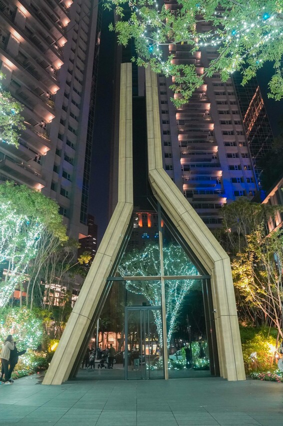 而最吸引眾人目光的「光之道」,是將隈研吾設計的景觀步道,化身長達250公尺的浪漫璀璨路徑。上萬顆銀白色燈泡點亮了草悟道的綠廊,打造出城市森林裡的雪景,我想許多人都是被這個景色給吸引過來的,即便是平常日,這裡也吸引了超多人來拍照打卡。這裡還隱藏著一座柳原教會,因為教會的佇立,剛好與聖誕節契合,營造出特別的氣氛。繞過洲際飯店的後方,這裡也有一排行道樹,而且高度比較低,如果要拍照也是很好看,而且人潮相對較少。