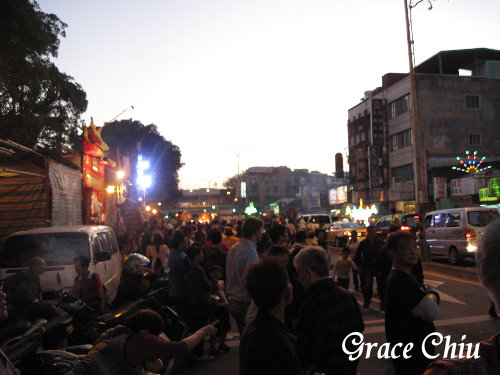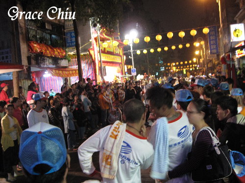 很想把之前的隊伍一一看完,但到了晚上隊伍間的停頓時間實在是拉的太長,於是決定再返回青山宮看看,正好遇到虎爺的隊伍返回青山宮.
