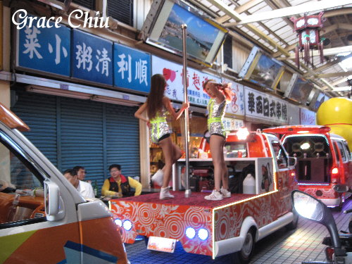 近年陣頭隊伍常見不少辣妹團,今年除了有辣妹小巴還有跑車辣妹,雖然不確定神明愛不愛看,但人愛看是真的,有辣妹經過的地方總是跟了很多的相機陣.