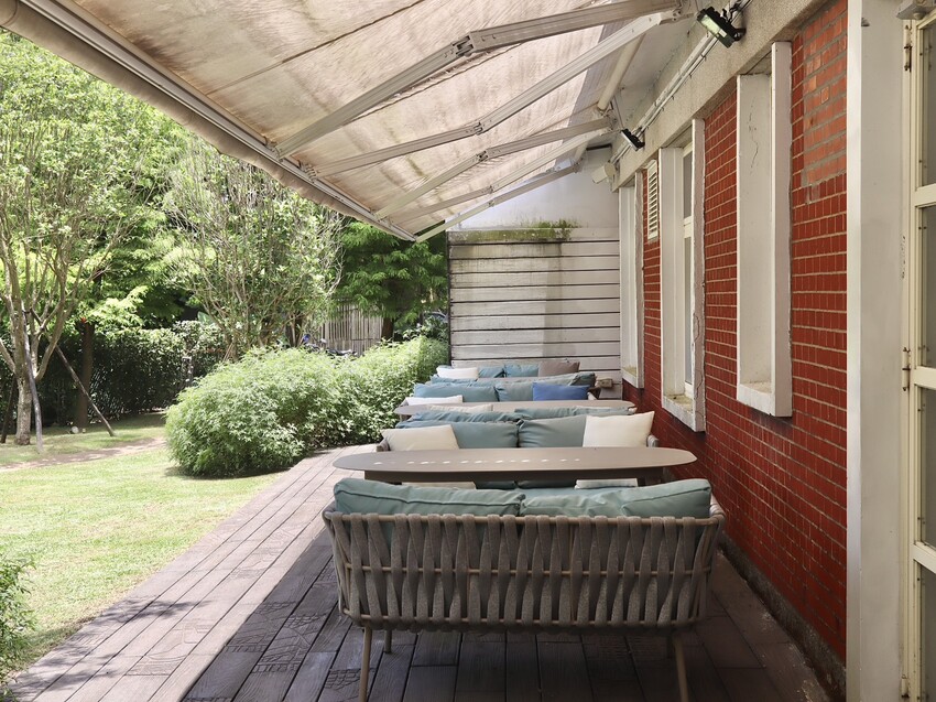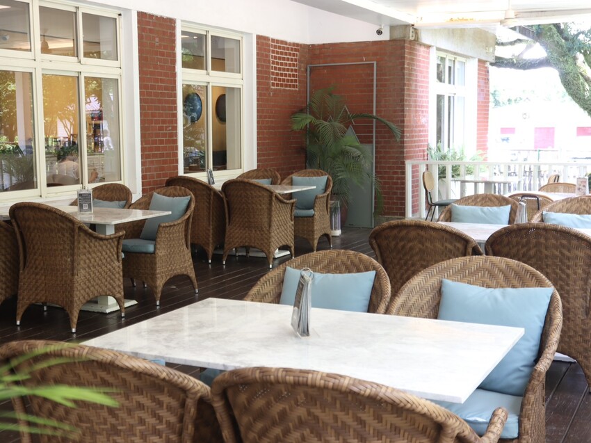 ▼The Café By想陽明山是美式老宅風格,還有綠意環繞的美式大庭院,周邊種滿落羽松與天然植栽。