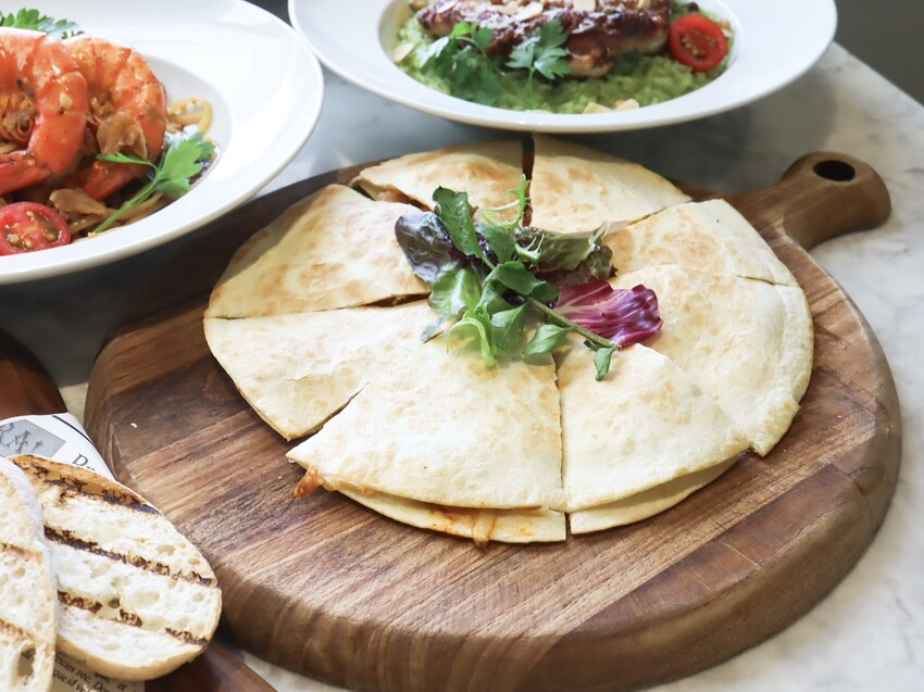 ▼別看它薄薄一片,但其實裡頭餡料超炸!裡頭塞滿剝皮辣椒、蝦仁、洋蔥等滿滿餡料,熱熱吃還會牽絲!