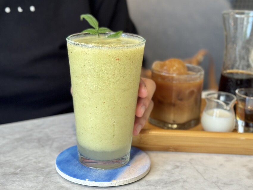 ▼熱到爆的夏天一定要來杯冰沙啊!大口喝下超級消暑!青青草山結合芭樂+奇異果+石蓮+蘋果,芭樂香氣明顯,清爽解渴不甜膩帶著真實水果的香甜