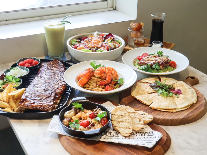 陽明山最漂亮人氣景觀餐廳「想陽明山」,藏身在美軍宿舍群裡,保留美式老宅風格的質感餐廳,還有綠意盎然的大庭院。室內牆上掛滿吳冠德老師藝術畫作,像在藝廊裡用餐一般愜意。料理品項豐富又有水準,義大利麵、燉飯、薄餅……通通好吃無雷,還有浮誇又軟嫩的美式豬肋排,份量大到適合一群人分食。無論想放空、約會或聚餐,「想陽明山」都是陽明山上的完美選擇
