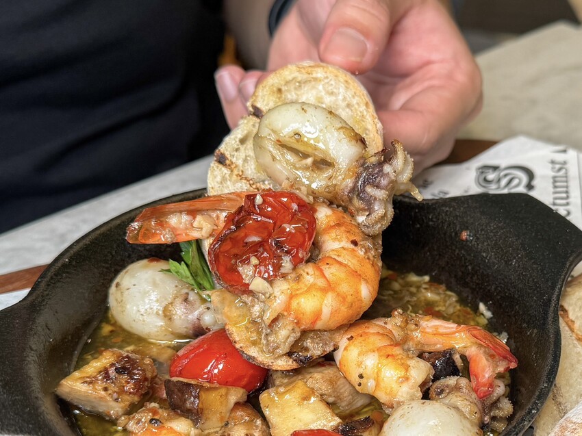 鯷魚油悶小花枝番茄與炭烤麵包 $330