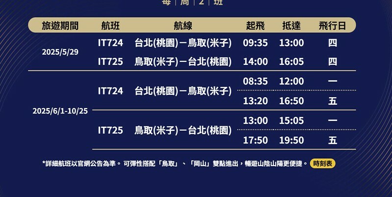 2025年5月後,虎航「米子/桃園」(每周兩班)線在談了許久後正式開通,對於我這個鳥取控來說就更方便了,也立馬買了6月底的來回機票。現在買還有機會得到虎航限定的「虎翼箱」。