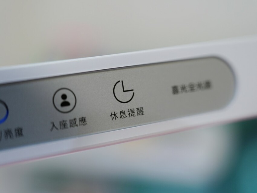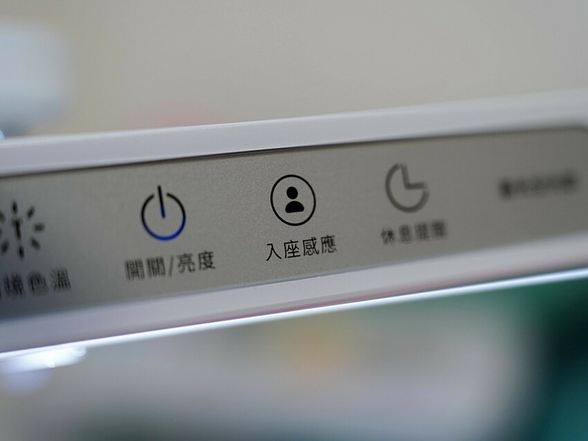還有一個我覺得超方便的設計,就是它的「入座感應」。完全不需要按開關,只要人一坐下來,燈就自動亮起來了,離開約10分鐘也會自己關燈。像我常常手上拿著書、飲料、或是剛洗完手回來,就很懶得再去摸開關,有這個功能真的完全解放雙手,科技感滿滿,又很貼心。