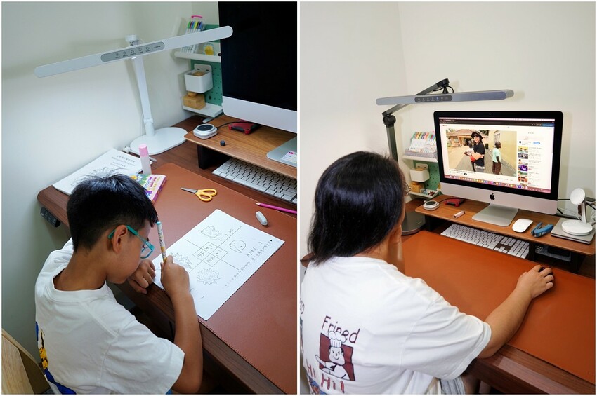 兩款燈都搭載微導光專利技術,讓光線均勻擴散,消除刺眼疊影,螢幕反光問題也大幅減少。尤其對像我這樣重度用眼、又要陪小孩讀書的爸媽來說,明顯感受眼睛輕鬆許多,能專心做事,不容易疲勞。