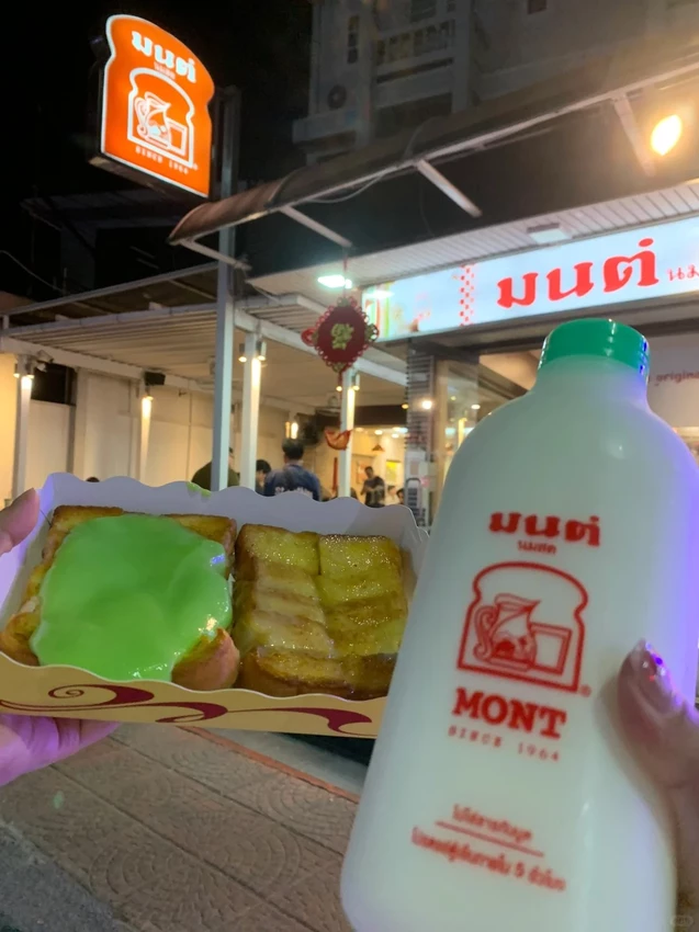 來 Mont,很多人衝著鮮奶而來,但其實讓我念念不忘的,是他們家的——「烤。吐。司。」🔥現烤土司外酥內軟,每一片都帶著炭火香,簡單切成小方塊,再豪邁地淋上各式泰式經典醬料,甜到心坎裡。😋