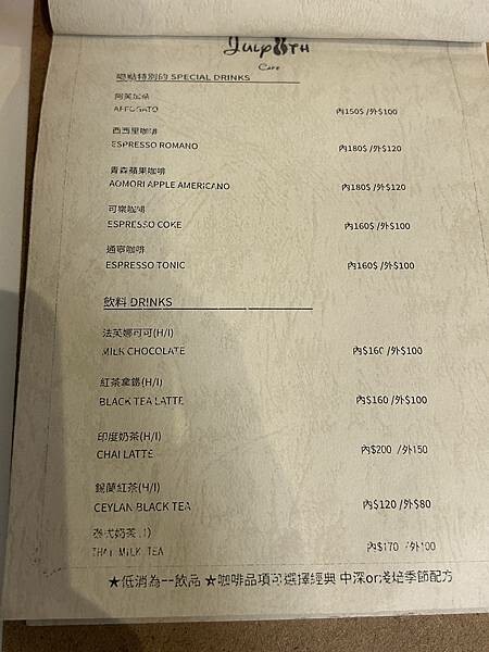 這家店的風格是很有現代感的韓系路線,在夜晚看起來特別沉穩有氣質。店裡面還有一隻看起來非常貴氣的貓咪,讓人覺得很驚喜。這裡有個小小的低消規定,就是每個人至少要點一杯飲品。他們的飲品選擇非常多樣,有手沖單品咖啡、黑咖啡、拿鐵系列、奶茶,甚至也有酒精飲品可以挑選。至於當天有供應哪些甜點,店家都會直接公布在門口,而且甜點是限量供應的,賣完就沒有了,喜歡的話真的要早點去。