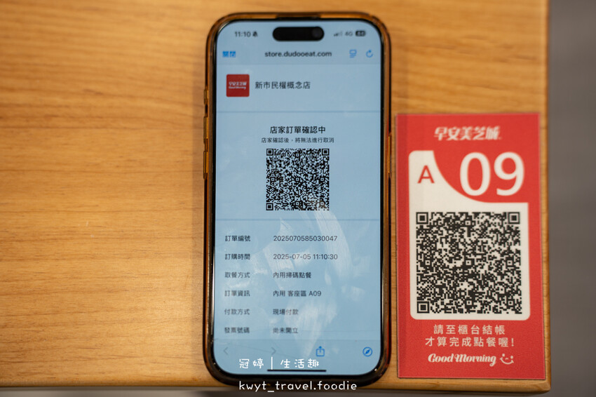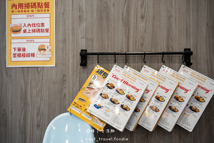 自行找座位入座後,掃描桌面上的QR Code點餐,點餐完記得到接待區付款結帳,結帳後才會開始排單製作餐點。