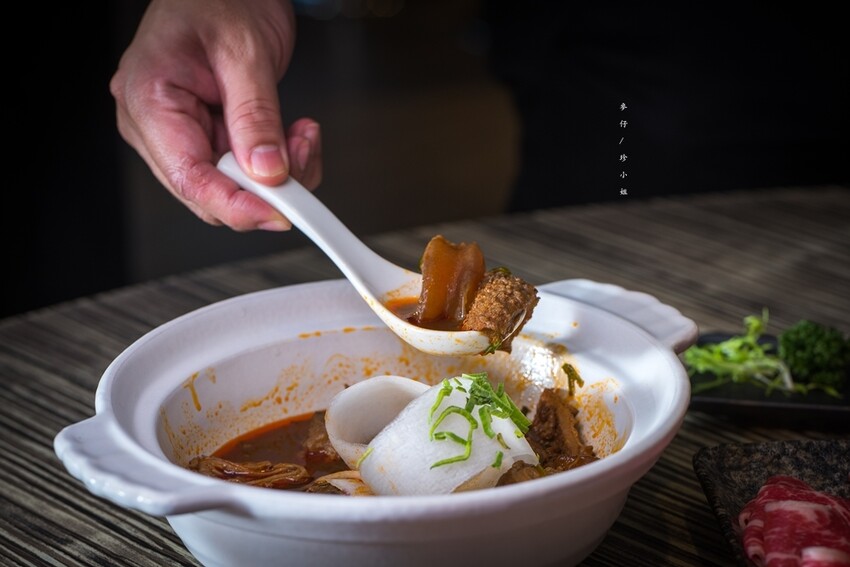 說到「麻神麻辣火鍋」的招牌果凍鴨血,其外表看不到絲毫氣孔,咬下一口,所有湯汁都鎖在鴨血中,服務人員會特別說明,為了保持鴨血的保水口感,他們建議將其切成一點五公分的正方體,這是一塊鴨血最美味的品嚐大小,第一次這樣優雅地吃鴨血,確實讓人印象深刻。麻辣湯頭裡都會附上鴨血跟豆腐,豆腐可以無限續加,但珍貴的果凍鴨血則需要另外加價購。此外,來「麻神」點王子麵絕對是老饕級的選擇,因為他們的煮法大不相同,王子麵入鍋十五秒就要撈起,這樣才能保有脆度,並讓麻辣湯頭充分滲入,超好吃。對於Prime牛小排,服務人員建議了三種獨特吃法,其中一種是將滾燙的湯頭直接倒入放有牛小排的碗中,以台南牛肉湯的方式呈現,讓牛肉呈現三分熟的軟嫩,這些都顯示了他們對食材與吃法的講究。