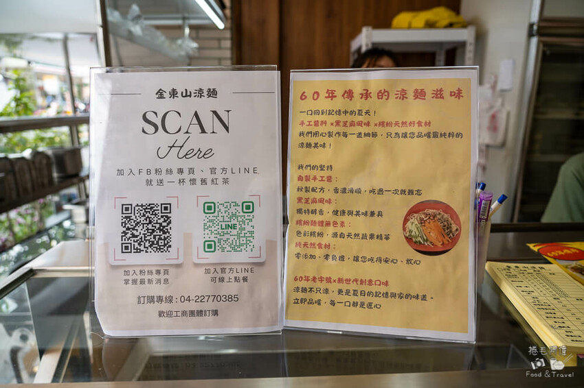 總體來說,金東山涼麵的CP值非常高,彩色涼麵在大熱天能讓不振的食慾多了一點趣味,麵條吃起來不粉,醬料清爽且香味濃郁,加上那暖胃的三合一湯品,就是一套完美的美味組合。想要品嚐這在地60年老店的美味,可以前往台中市太平區長億六街53之22號。它就位在長億六街上,距離長億高中很近,旁邊還有全家便利商店,停機車很方便,開車可能要找一下停車位會比較好。
