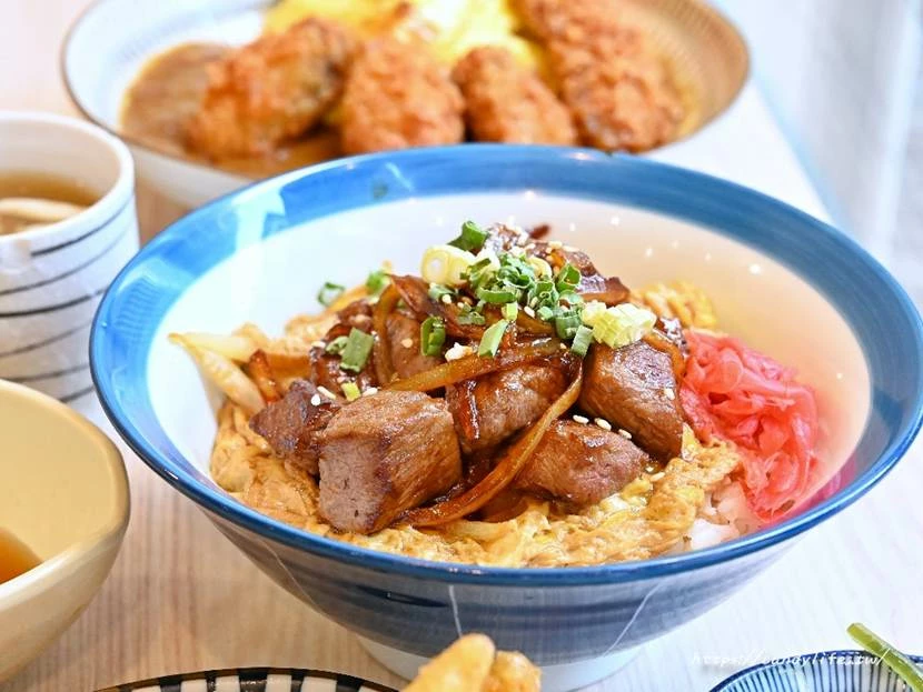這份醬燒骰子牛滑蛋丼飯也是店內的人氣必點!骰子牛經大火快炒鎖住肉汁,外層微焦香,咬下去軟嫩中帶點嚼勁,一上桌就香氣四溢、讓人食指大動