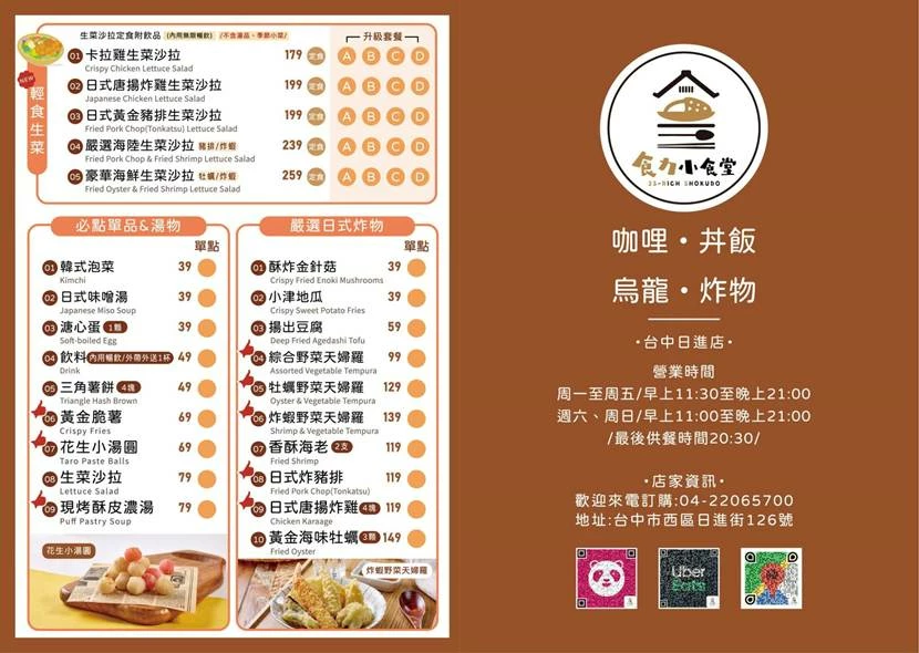 位在台中西區巷弄間的食力小食堂,是一間擁有濃濃日式氛圍的溫馨小店,店內主打多款經典日式料理,日式熟成咖哩飯、歐姆蛋咖哩飯、滑蛋丼飯、讚岐烏龍麵及沙拉,每一道都充滿誠意,網評超過2000則評價更高達4.9顆星,是許多老饕與在地人私藏的人氣名單