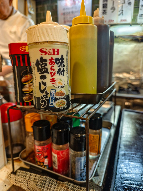 「あまから亭」每天下午5點開門,營業到晚上10點,週一和週二公休,大家規劃行程時要留意一下。店內空間雖然迷你,只有12個座位,包含兩張桌子和鐵板前的吧台座位,但充滿了濃厚的日本在地風格。通常是由親切的老先生在鐵板前為客人現場料理,老太太則會專心看電視,這樣樸實的日常讓用餐氣氛更加溫馨。這裡的菜單價格標示得很清楚,對外國客人來說非常友善,單點的品項價格多為1000日圓,廚房後面還有一些特別菜單,例如牛肉等會稍微貴一些,但在日本現在的物價下,仍然算是非常實惠的選擇,甚至連可樂也只要200日圓,超級佛心。