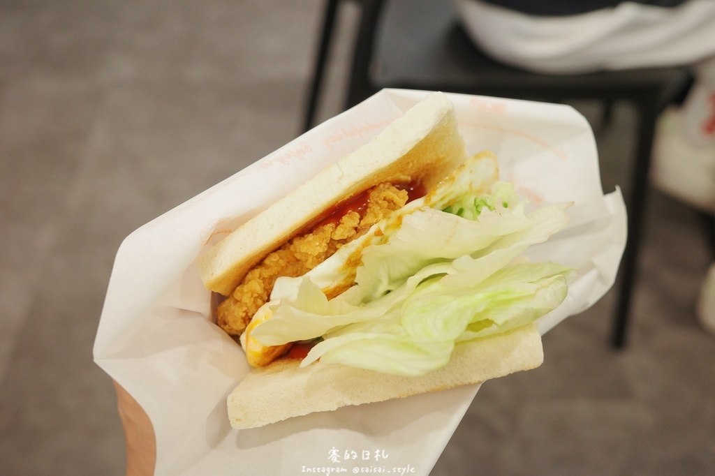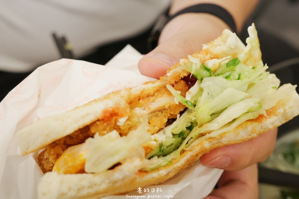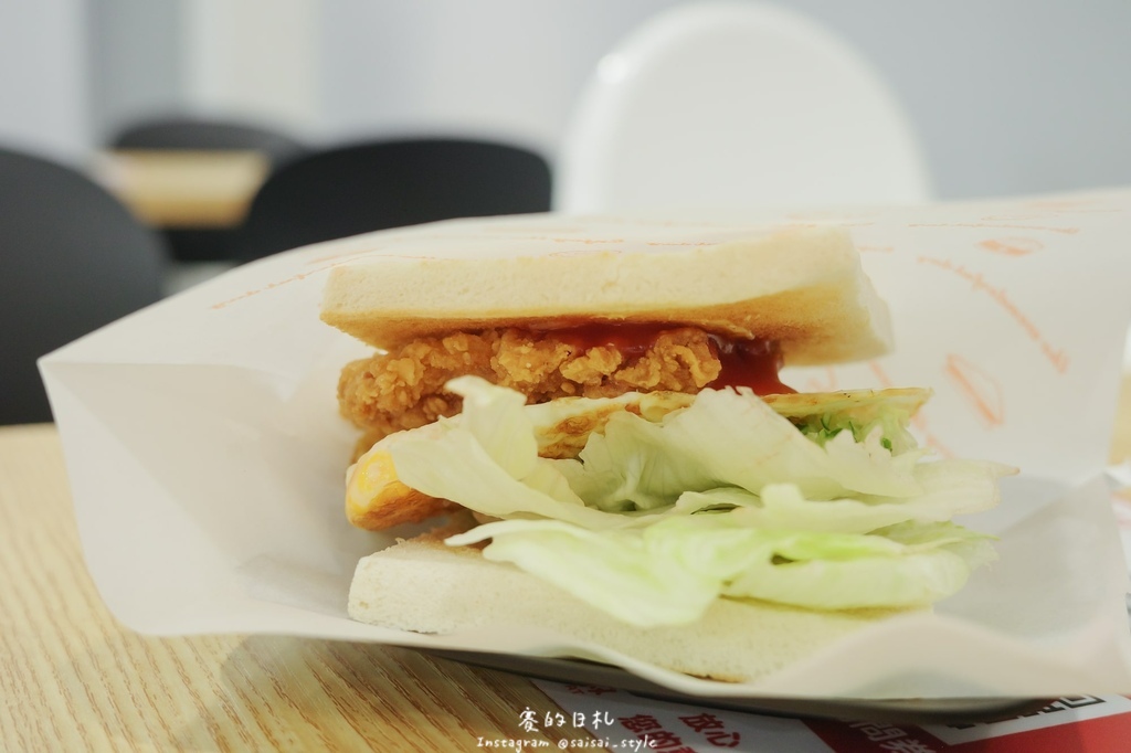 我們這天是傍晚五點半,他們一開店就來報到了。門口的紅色招牌真的超顯眼,店裡頭有一樓的座位區,還有二樓的冷氣區,總共提供了大約五十個座位。整體環境非常乾淨舒適,夏天的時候在裡面用餐也很涼爽喔。除了剛剛說的一樓空間之外,二樓的用餐區更為寬敞,每一桌的距離都不會太近,讓人用餐起來感覺很舒適。店家除了空間很舒適之外,在一樓和二樓都有提供醬料區,大家都可以根據自己的口味去調整喔。這裡的泡菜蛋餅一上桌就香氣撲鼻,外層用的是那種酥脆感十足的餅皮,吃起來有層層的酥香,搭配裡頭微酸微辣的韓式泡菜,還有滑嫩的蛋皮,口感真的非常有層次。泡菜的味道是偏向清爽系的,吃起來不會太重鹹,跟餅皮搭配得剛剛好,是會讓人一吃就愛上的味道。它的份量很適中,不管是當宵夜還是點心都很剛好,很推薦給喜歡那種酸辣開胃感的朋友。還有這款卡拉雞腿吐司,讓我一吃就覺得很驚艷,外層酥脆內裡軟嫩的炸雞腿排,加上煎蛋和大量清爽的生菜,咬下去層次非常分明。吐司還有特別切邊,吃起來更順口,不會刮嘴。整體比例抓得非常剛好,如果你想吃點炸的但又不想太有負擔,這款真的超級適合。