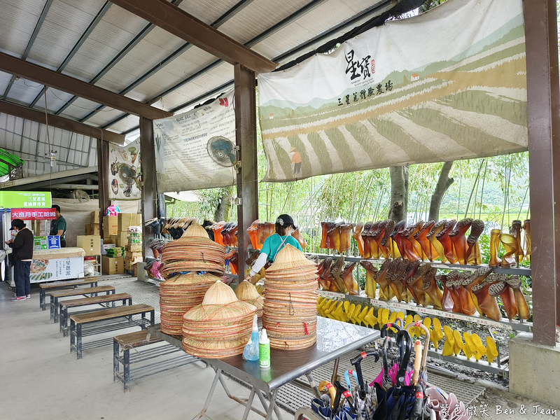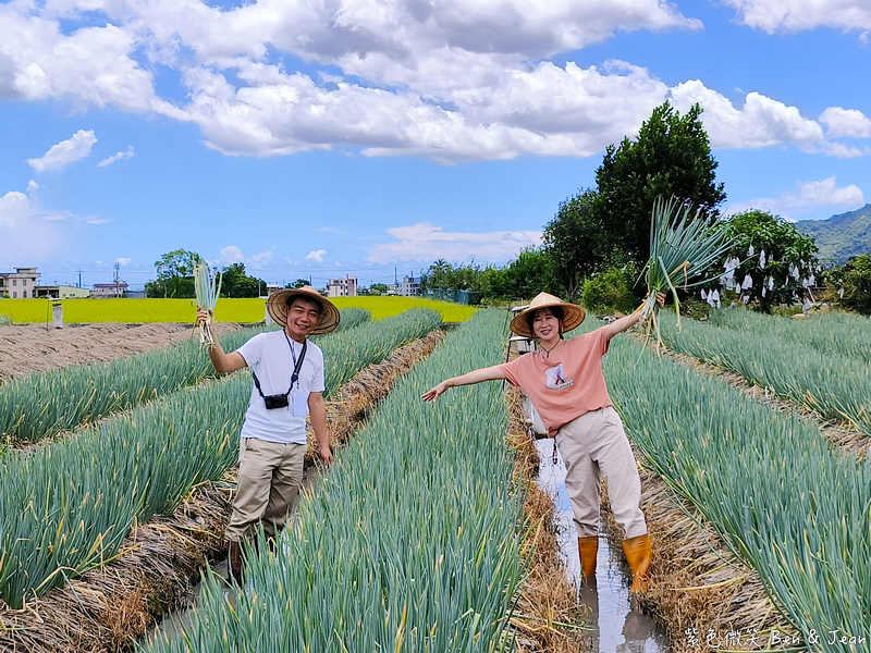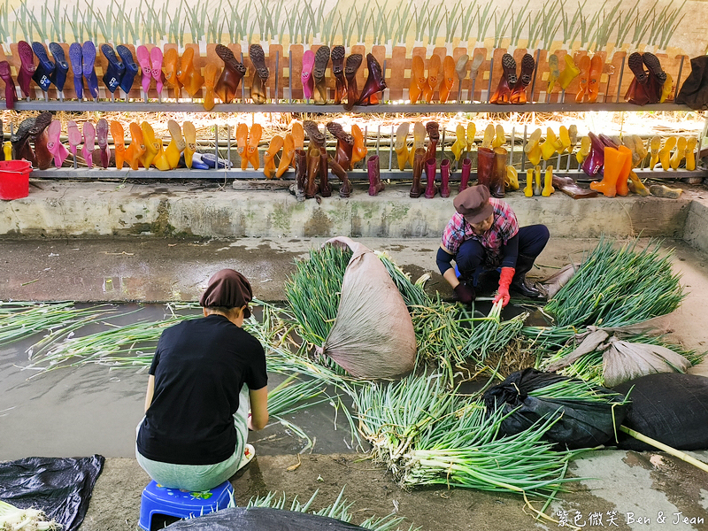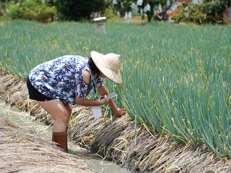 要下蔥田之前,一定要先換一下裝備,戴上斗笠,穿上雨鞋,這樣就可以準備出發了。這就是著名的三星蔥田,蔥雖然是我們尋常可見的農作物,但唯獨三星蔥因為有得天獨厚的地形跟氣候,所以才能生長出品質這麼好的三星蔥喔。拔蔥之前,會有專業的農場人員教導拔蔥的技巧,其實也蠻簡單的,只要輕輕握住蔥的根部再出點力就可以拔出來了。這種親自動手的過程,真的是都市地區很難體會到的成就感呢。蔥拔回來之後,還要送到專門的洗蔥池去清洗。三星蔥的特點很多,從外觀來看,它的蔥白會特別長。接下來,我們準備自己動手做蔥派了。農場人員會先解說一下整個過程,每個人都會拿到麵團、擀麵棍、油、還有新鮮的三星蔥等等。只要把麵團用擀麵棍全部壓平成大約A4大小,就可以把三星蔥加進去再捲起來。接下來再慢慢拉長到大約兩根擀麵棍的長度,最後再把它捲成蚊香的形狀就可以了,記得中間一定要留個小洞喔。再來就是交由農場人員,把我們做好的蔥派下油鍋煎出美味的蔥派了。等待蔥派的同時,我們一行人會轉往隔壁的咖啡廳,這裡會有「行前教育」,會先聽一下梅花鹿的小故事跟注意事項,這樣玩起來會更有趣喔。除了梅花鹿,這裡也有可愛的小驢子,跟小動物接觸,真的會喚起大家童心未泯的一面,大家都玩得超級開心的。香噴噴的蔥派好了,一上桌就香味撲鼻,口水都快流出來了。農場還有推出文青風格的可愛提袋,這個體驗真的太好玩太有趣了。
