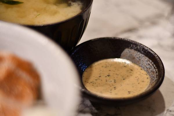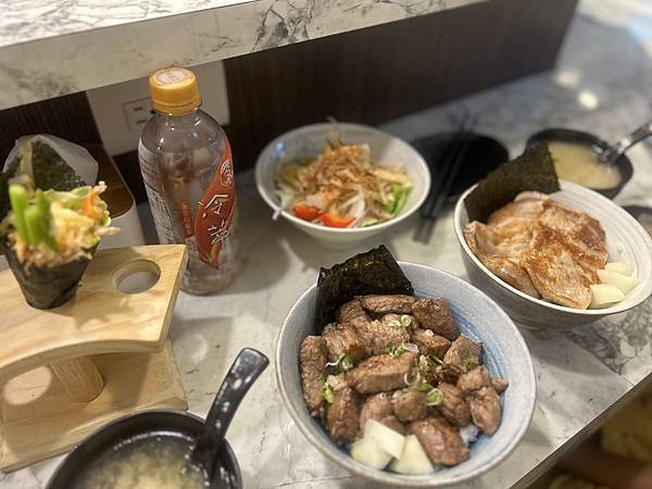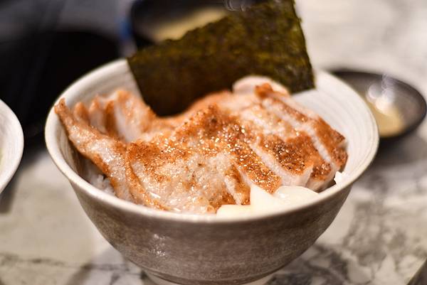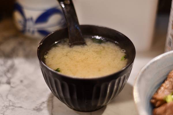 再來是「椒鹽松阪豬」,這道菜會附上檸檬松露醬。松阪豬烤得熟度恰到好處,有點金黃焦香卻又保留了脆度,水準很高。沾上檸檬松阪醬吃,層次感更豐富,清爽不膩口。另外,這裡的丼飯都會附一碗味噌湯,湯頭帶點甜味,味道還不錯喔。如果想在飯前開胃,可以點一份「蘆筍蝦手捲」,這道中規中矩,味道沒問題,就像一場歡樂的開幕式。整體來說,樸拾的料理非常實在,一點都不馬虎。我們當天點的每一道菜都讓人很滿意,真心覺得物超所值。